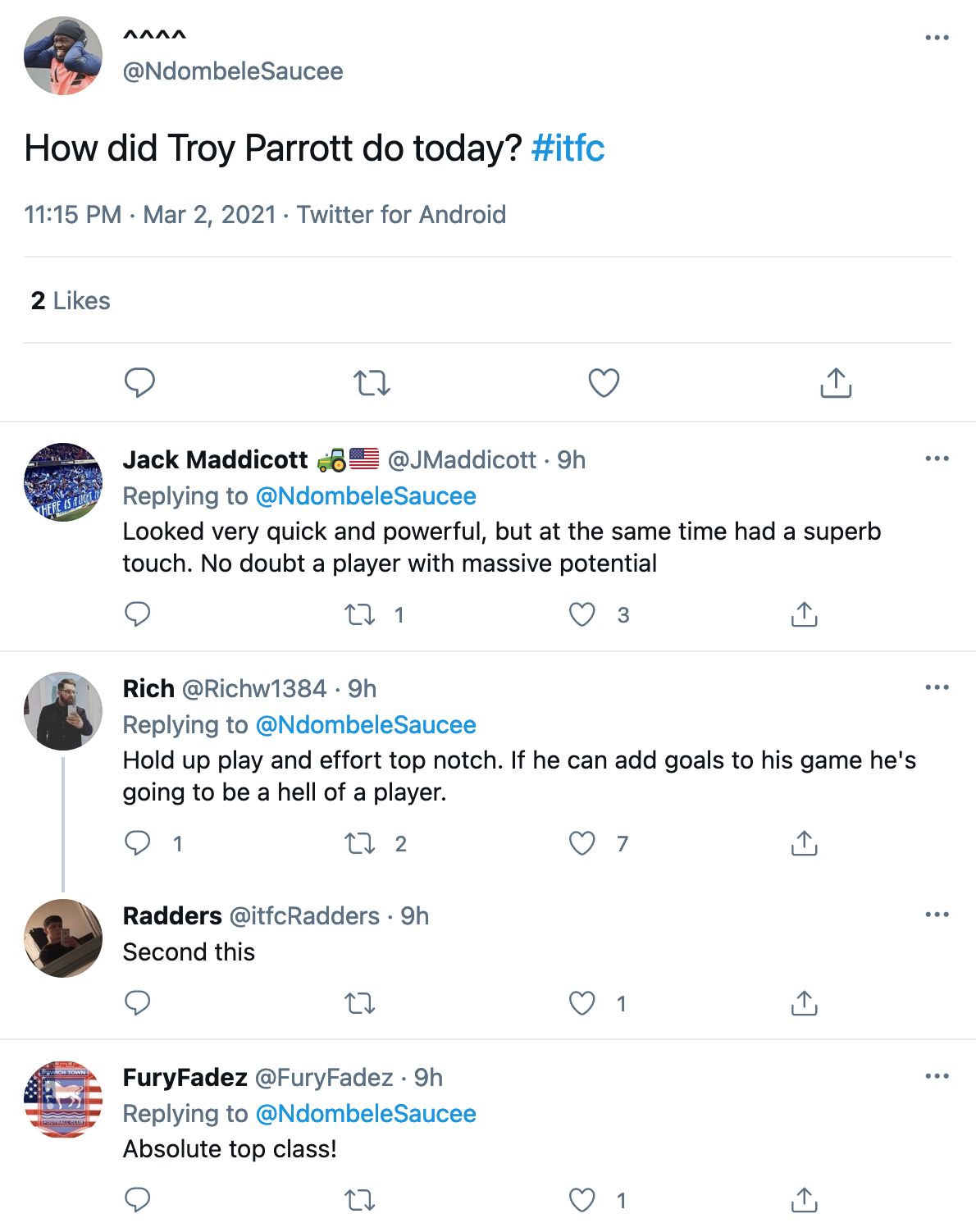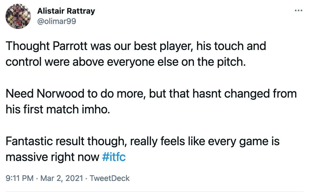 This morning I fire up the iMac and see that Troy Parrott has won rave reviews for his appearance against Accrington last night. Here are just a couple of supportive notices, there were a lot more. All written by people with greater powers of appreciation than I.