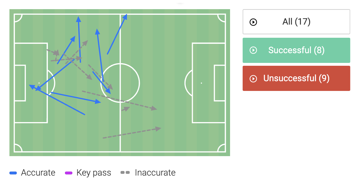 Despite losing 2-6, Maksim himself didn’t have a terrible game other than his passing accuracy which at 47%, he will know to be very poor. For context, his mean average at Tottenham is 81.8%.