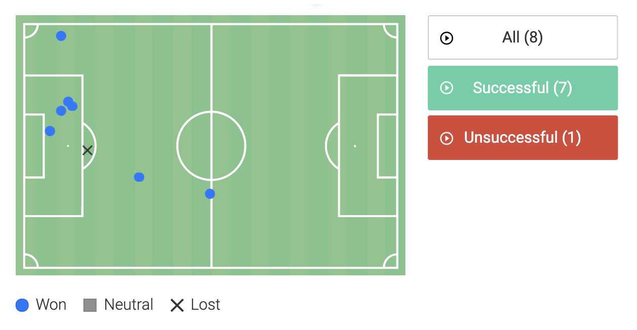 Maksim won 7 of the 8 duels he participated in, and if we look at the interceptions the boy made, then despite there having been a dozen, they were on the frenetic, low end of what qualifies as an interception, and if I showed you clips, you’d honestly wonder why I’d bothered.