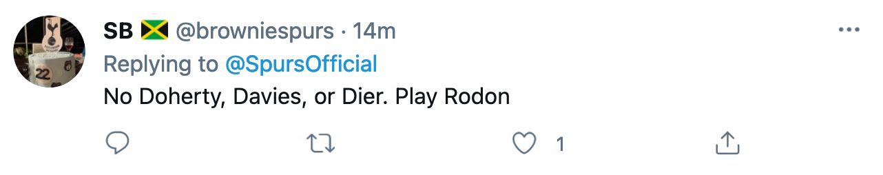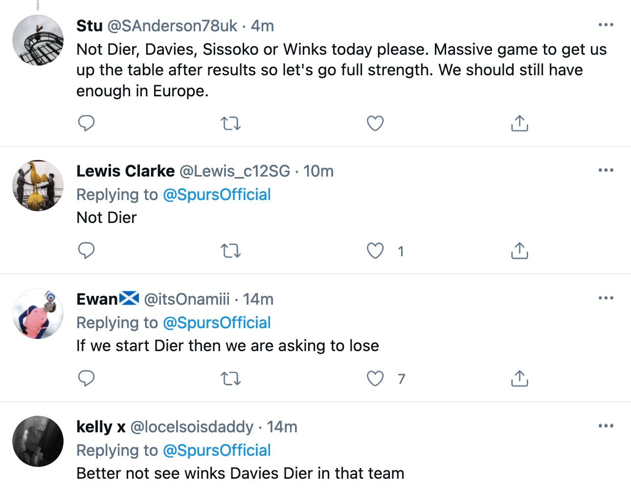 I would stick with Toby and Sanchez at the back and rotate with Rodon and Toby. I would give Tanganga a rotation with Aurier as I think he could do a job for us there. Personally I would be happy to never see Davies, Dier or Docherty anywhere near the first eleven again