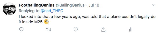 The scammers’ bogus account that contacted @nad_THFC was apparently only set up a few weeks ago, and featured no Spurs content until recently, yet still managed to persuade @nad_THFC that the plane and banner existed.