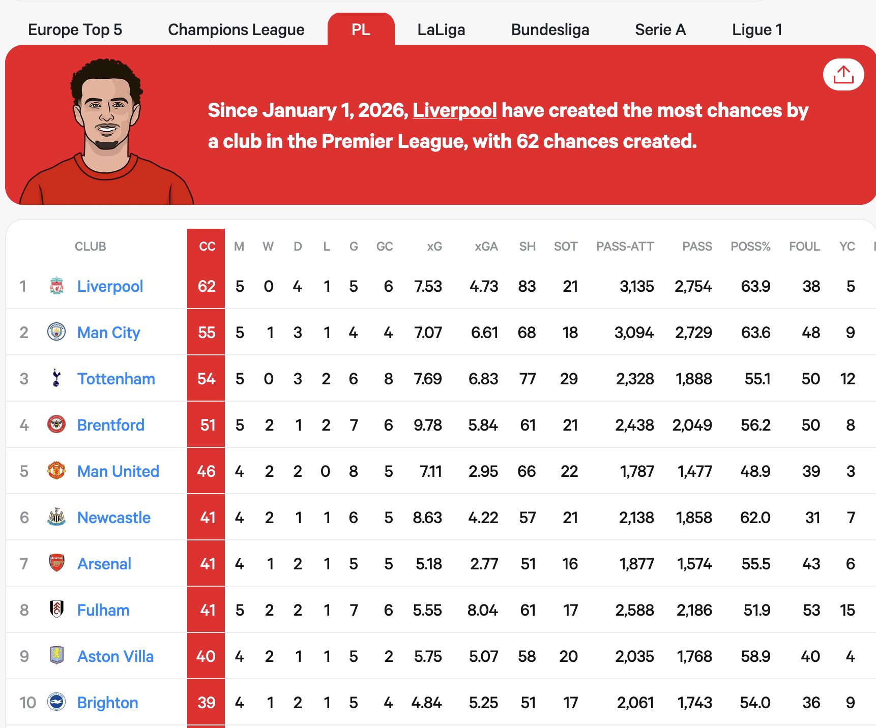 Tottenham has created the third most chances in the division, but has not managed to convert anywhere near enough of them.