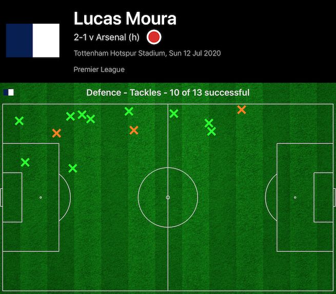 Lucas Moura’s form has been as unsettled as just about any Tottenham player’s in recent weeks, but against Arsenal last night, the industriousness of the attacker was sensational, to say the least. 10 successful tackles is the most that any Spurs player has made in a single game in a good long while, and a North London derby is no better place to drop this particular talent bomb.