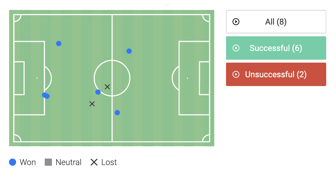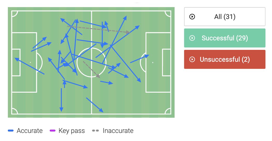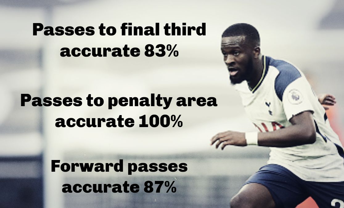 This is precisely what one expects from a defensive midfielder. Ndombele’s high passing accuracy and the desire to power the plays forwards were impressive. 94% is where we want players to be,