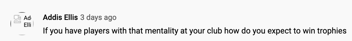 Fans passing comments on this clip were frequently in agreement with the sentiment.
