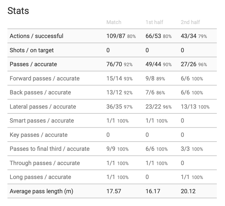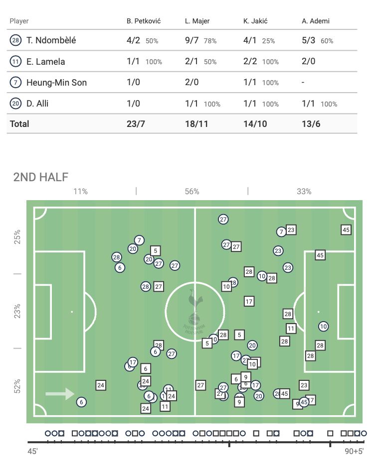 Tanguy had a great game with a typically strong total successful actions percentage and a damn fine 92% successful passing accuracy. Thankfully these stats do not conceal a Harry Winks type of affair that didn’t achieve anything tangible.