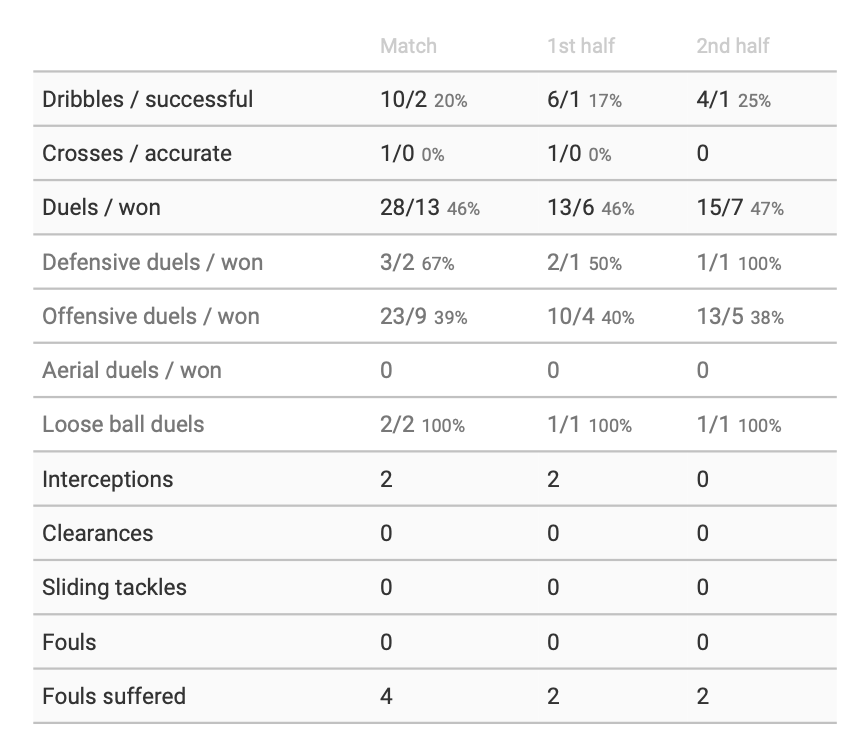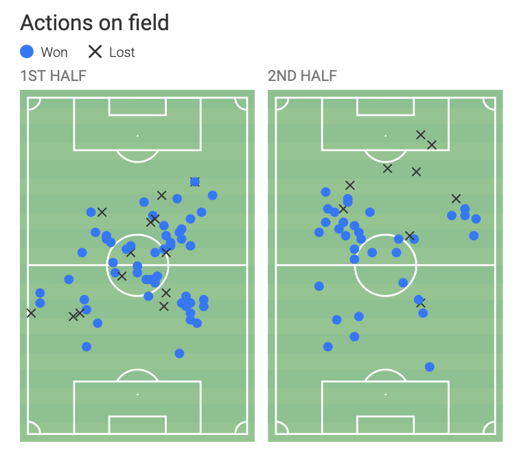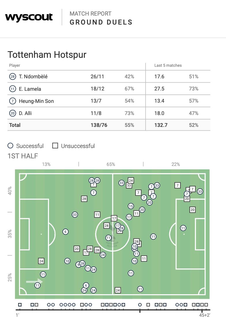 Playing two defensive midfielders against this lost was a shrewd move by José and Tanguy was our most effective player in respect of ground duels.