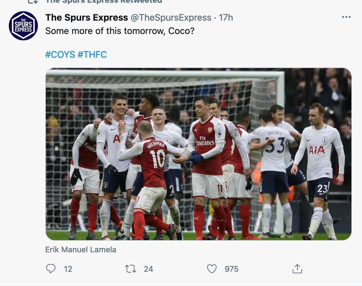Coco understands the derby, over 7 years a Spurs player with a terrible injury record but 110% heart.